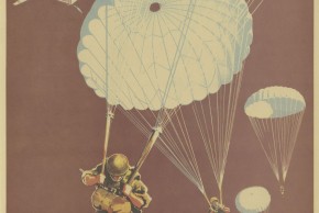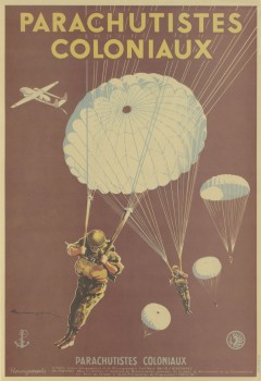 Cette affiche provient d'une opération de communication des bureaux de recrutement pour les troupes coloniales incitant à l’engagement en tant que parachutiste dans les années 1950.